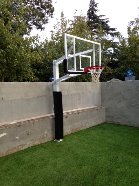 - Potanın çarpma levhası (Panyası) Son FİBA kurallarına göre 12 mm kalınlıkta TEMPERED GLASS olacak ve 105x180cm ebatlarında olacaktır. Cam Panya kırılmalarının önlenmesi amacıyla FİBA’nın almış olduğu son uygulama gereği çemberin takıldığı yerde cam olmayıp bağlantı direk metal aksama yapılacaktır. Profesyonel kurallar gereği yine FİBA, profesyonel potalarda kullanılacak panyaların TAMPERED GLASS olmasını topun çarptığında geri dönüşü açısından zorunlu kılmıştır. Panya üzerindeki oyun çizgileri iki cam arasına baskı yöntemi ile çizilmektedir.